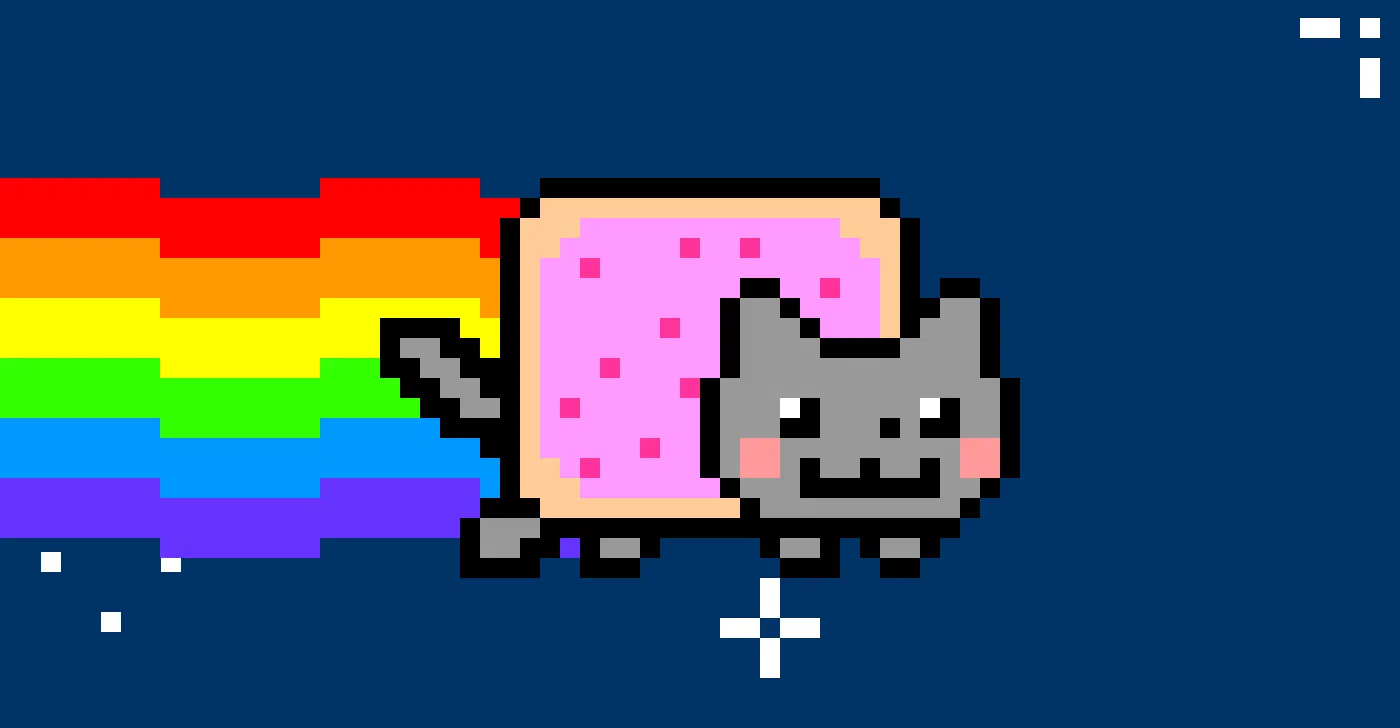 Nyan Cat began on April 2, 2011, when illustrator Christopher Torres combined a cat's face with a Pop-Tart body in a pixel art GIF, inspired by his own pet, Marty. The meme reached legendary status just days later when YouTuber Saraj00n paired the animation with a high-pitched Vocaloid song by DaniwellP, where "Nyan" represents the Japanese onomatopoeia for a cat's meow. This simple loop of a celestial feline trailing a rainbow through space became a pillar of early 2010s internet culture, eventually spawning an entire Nyan-verse that included a dark, waffle-bodied rival named Tac Nayn and a landmark legal case that helped define digital copyright for creators.